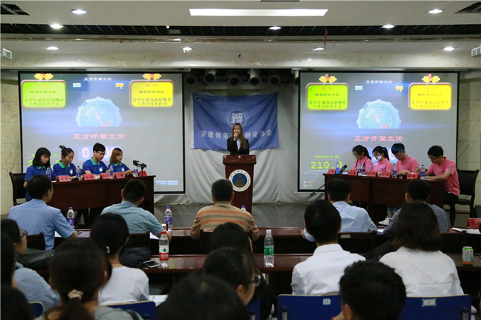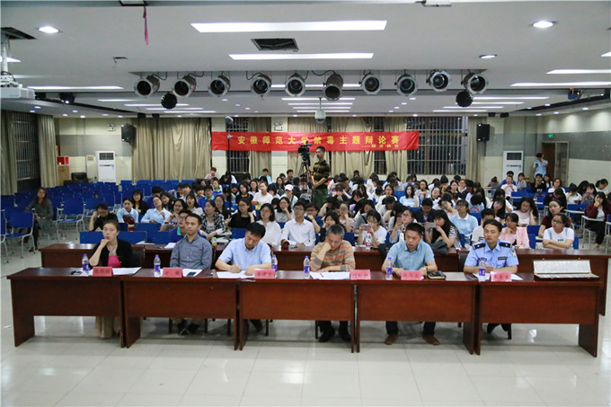 本网讯(辩论协会)“弘扬禁毒精神,放飞青春梦想。”2017年5月17日晚7点,beat365英国官方网站禁毒辩论赛决赛在大学生活动中心二楼团委多功能厅如期举行。本次活动在芜湖市禁毒办的支持下,由校团委主办,校辩论协会和国旅学院学生会联合承办。芜湖市禁毒办常务副主任、市公安局禁毒支队支队长秦建文,市禁毒办副调研员何松新,市禁毒办副主任、市公安局禁毒支队副支队长方曦,市禁毒办副主任赵期发,芜湖市弋江区禁毒办干警王东生,校团委副书记张园园担任大赛评委。通过初赛、复赛,经管学院代表队和教科院代表队成功晋级决赛。