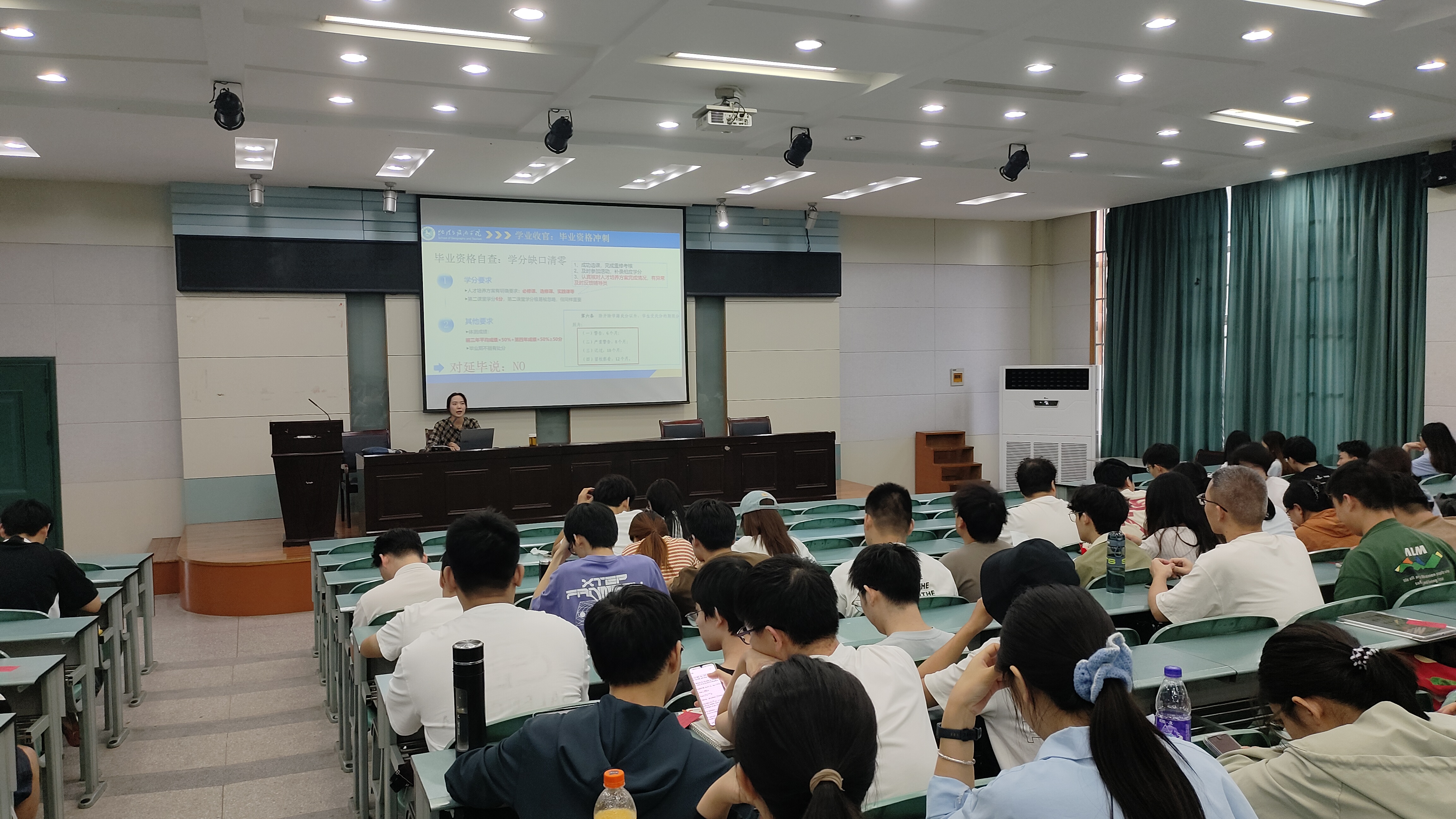 2025年9月26日下午,2022级地理科学(拔尖班)、地理信息科学、土地资源管理专业于beat365英国官方网站实验楼101报告厅召开主题班会“大四,毕业启航进行时”。2022级地理科学(拔尖班)、地理信息科学、土地资源管理三个专业全体同学参与,班会由辅导员陈祥云主持。