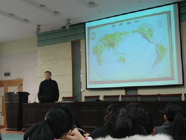 查老师以“习近平主席论气候变化、气候和天气事件、气候理念影响多学科领域、国家领导人都在关心气候变化和环境问题”四个模块规划这场报告会,并对每个模块进行详细阐述。他以一幅世界地形图引出了今天讲座的第一部分内容——习近平主席论气候变化。査老师还向同学们介绍了近期的气候和天气事件,并将西北地区水资源的缺乏与多雨区的水灾进行对比,帮助同学们理解相应的气候变化。继而又从定性和定量两个方面阐述了气候变化分别与自然、经济、社会、海洋、大气之间的联系,并举了一些著名地理学家的例子,如竺可桢、叶笃正、刘东生以及遥感技术的代表人物郭华东等,表达了对同学们以后发展的殷切期望。最后,查老师从“世界气候变化大会、国家领导人会议内容之一、政策文件和措施”三个方面表现了国家领导人对气候的重视,并表示希望同学们注意保护气候环境的意愿。查老师平实而又与时俱进的讲解使同学们获益颇深,获得了同学们的一致好评。