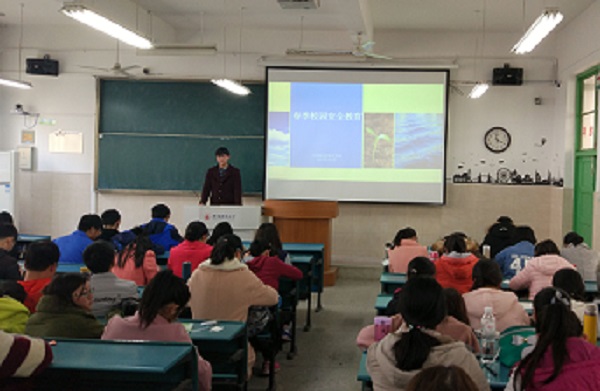 开学至今,从院辅导员到学生会学生骨干、班级班委,主动召开安全用电、宿舍安全等主题班会,努力营造建设平安校园的和谐氛围,增强学生安全防患意识。2016级地理科学专业班委会以“春季校园安全教育”为主题召开班会,从“身体健康”,“心灵阳光”,“寝室用电”,“食品安全”四个方面,面面俱到的讲述春季校园安全中应注意的问题与应对举措,使同学们受益匪浅。