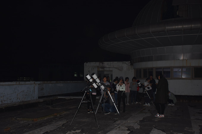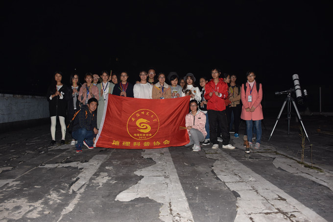 本网讯(地理科普协会) 近日,校地理科普协会在国旅学院实验楼天文台组织100多名会员参与“超级月亮”的观测活动,普及地理科学,启发大学生创新求知意识。