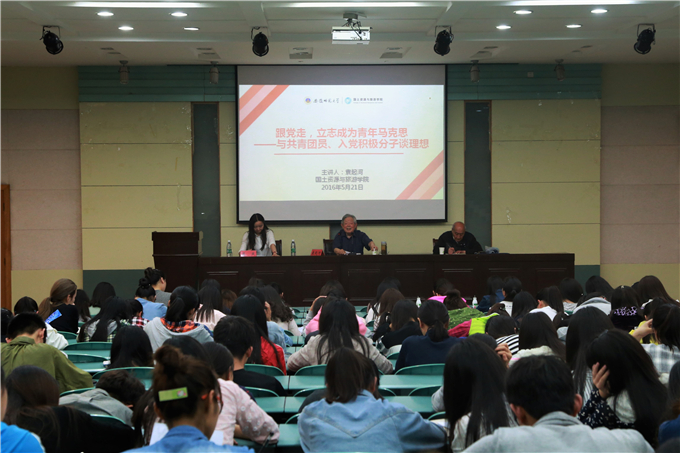 本网讯(国旅学院521日下午,校关工委常务副主任、原校党委副书记袁起河在国旅实验楼101报告厅作了题为“跟党走,立志成为青年马克思”的报告会。国旅学院200余名学生党员、入党积极分子和团员青年参加了此次报告会。报告会由2015级旅游管理专业辅导员吴燕主持。
