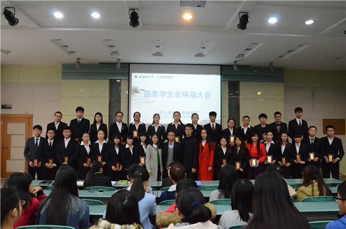 大会在全场慷慨激昂的团歌歌唱中拉开了帷幕。2014级辅导员王美宣读2016届团委学生会干事名单,2014-2015学年国旅学院学生会主席盛婷作述职报告。她与全体学生会干事分享了自己成长的点点滴滴,并对大家寄予了厚望。她表示,学生干部要学会“看天、看地、看自己”,保持奋发向上的热情、谦逊踏实的品性、积极完善的决心,勇于承担责任,追求卓越,才能为建设更好的学生会贡献自己的力量。新任学生会主席李琪也上台发言,代表新一届学生会全体学生干部表明服务同学、锻炼自己的决心,并从加强内部组织建设,提高团队凝聚力和信用度,增强对外交流,开展少而精、不拘一格、不断创新的二三课堂素质拓展活动等方面提出了自己的畅想。随后,院团委指导老师吴辉做总结发言,他高度赞扬了过去一年团委学生会工作所取得的成绩,并对未来提出了希冀,努力打造“招之即来,来之即战,战之必胜”的团结协作型的学生干部队伍。2014级辅导员李小文宣读了2015届团委学生会骨干名单并为其颁发聘书。