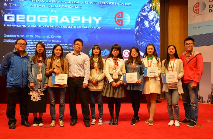 本网讯(国旅学院 孙晨)2015年10月9日—12日,由中国地理学会青年工作委员会主办、华东师范大学地理科学学院承办的“第十五次全国青年地理工作者学术研讨会”在上海召开。本次会议与“第十届中日韩地理学家学术研讨会暨第一届亚洲地理学大会”合并举行,吸引了来自中、日、韩等11个亚洲国家与地区,以及英国、美国、瑞典等欧美国家的近300名地理学者和地理学工作者共襄盛举。beat365教师高超、孙鹏带领八名学生参加了此次会议中的青年地理学术辩论赛,并获得自然地理组季军、人文地理组优胜奖的好成绩。其中,13级地理科学专业程璐荣获人文地理组最佳人气奖,14级旅游管理专业孙晨荣获自然地理组最佳人气奖、优秀辩手奖。