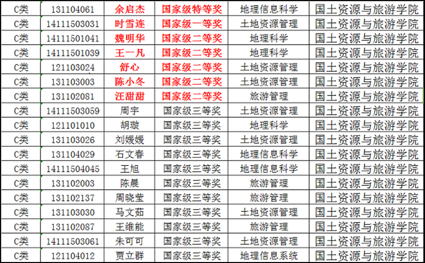本网讯(国旅学院 王美)日前,全国大学生英语竞赛组委会公布2015年获奖名单,国旅学子在本次全国大学生英语竞赛中发挥出色取得佳绩,共有18名学生获得国家级奖项,其中13级地理信息科学专业余启杰同学获得国家级特等奖,14级土地资源管理专业时雪连同学获得国家级一等奖,另有5名同学获得国家级二等奖,11名同学获得国家级三等奖,此外还有26名学生分别获得校级一二三等奖。