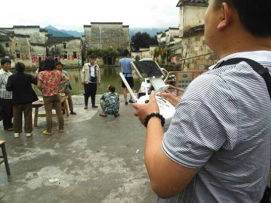 队员们操作的无人机是一种由无线电遥控设备和程序控制设置操作的无人驾驶飞行器,它主要承担了对宏村进行全方位航拍和对获取的数据进行校准的任务,可谓是体积小、功能强、作用大。现如今三维建模技术的发展日臻成熟,结合智慧旅游和智慧景区建设的要求,队员们借助无人机等设备运用三维建模技术对宏村景点进行三维扫描,并将所获得的数据通过专业软件进行合成处理,得到仿真模拟的三维景区影像,从而实现游客通过互联网终端便可以体验到身临其境般宏村的美景,实现宏村的虚拟游览。