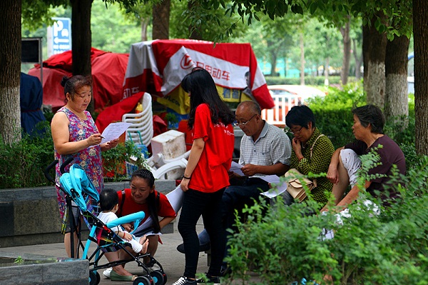 在宣讲过程中,一位带着孙子的阿姨有感而发,跟队员们讲起了以前的事。她回忆道,“在我年轻的时候,家门前有一条小河,水特别清,还有很多鱼。可就这几年,老房子前的河已经被污染的没样了,一到夏天臭气熏天。”她也讲道,“近几年,芜湖治水的力度挺大的,希望将来水可以恢复到以前的状态。”