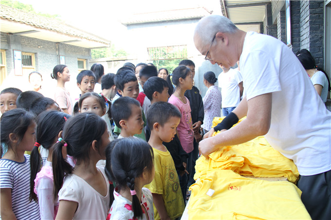 在清扫完学校之后,16日上午,金鸡乡乡长、县中心小学校长等相关领导赶到尖山村小学看望志愿者们。冯先生为学生们分发了崭新的校服,王娟和她的团队也将带来的物资送到了每一个孩子手中。队员们也为孩子们购买了学习用具、体育用品及玩具等。拿到礼物的孩子们发出银铃般的笑声,开心地玩耍着,教室里、操场上到处是他们奔跑的身影,校门边的野花也随风舞动,生命因他们而鲜活。