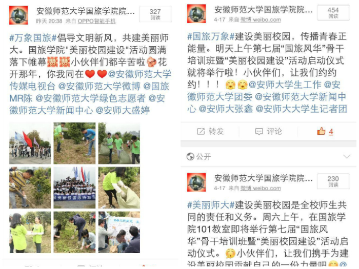 在本次“美丽师大·文明共建”系列活动中,即将毕业的2015届毕业生也与领导老师、学弟学妹们一起,共同回忆了两年来维护清理丹桂园的点点滴滴和在师大求学蜕变的幸福生活,并以“薪火相传、青春寄语”的形式,传递了国旅学子的青春正能量。