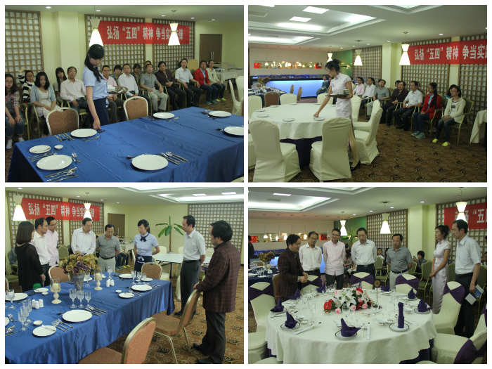 展演过程中,旅游管理专业负责人王朝辉教授向与会师生详实介绍了大赛背景及学院前期筹备情况,并从中西餐就餐文化、座次规范、餐具摆放的技术规格要求等方面进行了重点讲解。旅游管理专业教师钱璐则从参赛项目创意设计理念、餐桌摆台的技术动作规范、礼仪要求、颜色搭配、菜单设计和餐具选择等方面做了专业点评。