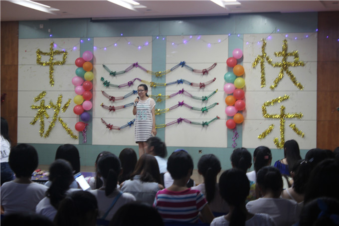 本网讯(记者团 周男)为了庆祝中秋佳节,使正在艰苦军训中的2014级新生体会到家一般的温馨,9月8日晚,在师大花津校区团委多功能厅和国土资源与旅游学院实验楼121活动室,举行了两场欢度中秋晚会。