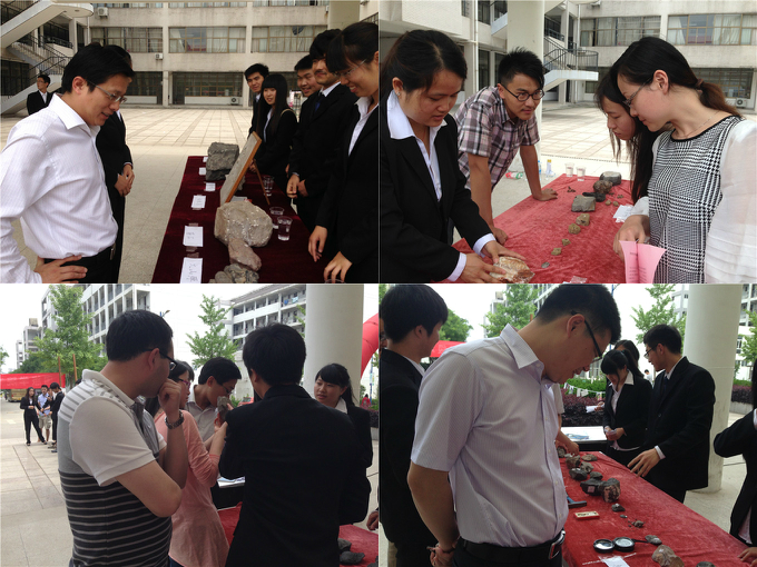 本网讯(13地科  周男)为了在师大校园里普及地质知识,提高师大学子了解学习地理的兴趣,同时展示国旅学院13级地理科学专业巢湖实习的丰硕成果,充分展示其独具特色的专业风姿,2014年5月21日中午,由13级地理科学专业主办的主题为“石意,石忆”的化石展在师大花津校区大学生活动中心成功举行。