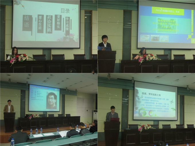 当天下午三点,来自11、12级各个专业,共计17名参选同学在经过院内第一轮申报材料初审之后,齐聚一堂,按照会前抽签顺序依次登台汇报。他们借助制作精美的PPT, 分别就自己在科技创新、学风建设、道德示范、社会实践、志愿服务、文体活动、自强奋斗、社团活动、学生干部、文化交流等方面的优异成绩,声情并茂地向现场的老师同学们,汇报了自己在师大国旅的成长与收获,充分展现了beat365学生良好的精神风貌和青春风采。其中,来自11级土地资源管理的陶丽婷同学从“学习刻苦,成绩优秀”,“立足专业,全面发展”,“思想进步,紧靠组织”和“服务同学,社会实践丰富”四个方面展示了她进入大学以来的成长历程;12级城乡规划的沈惠敏用甜美的笑容和快乐的笑声感染了在座的每一个人,表达出自己“爱心接力,幸福传递”的美好愿望;12级旅游管理专业的张清源用行动,证明着他的承诺——“点滴进取,不卑不亢”;11级地理科学的谢飞和大家分享了作为校学生会主席背后的工作故事……一言一语,尽现的是国旅学子的风采与魅力;一颦一笑,彰显的是时代大学生的姿态与青春。