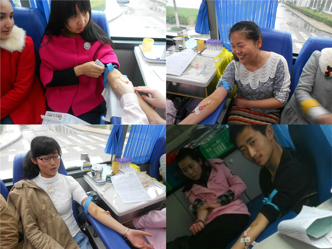 献血现场,参与献血的同学很多,在学生会成员和现场医护人员的协调帮助下,排队、填表、体检、化验、献血,所有程序均井然有序地进行。体检合格、化验结束后的同学才能进入献血车开始献血。献血车里,正在献血的同学表现出自己的勇气,有的笑着与医护人员聊着天,有的安静地等待着献血结束;坐在一旁等待的同学,则显出一份期待和些许紧张。献完血的同学们在车里稍作休息,由医护人员确定安全健康之后,便可以下车,领取献血证书。工作人员还为他们准备了献血纪念品。也有同学因为身体不适导致体检不合格而无法献血,他们在遗憾的同时,也表示以后会多加锻炼再来参加献血。