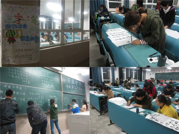 (图\文 徐凯旋、张梦翠)为进一步提高师范生的专业技能与人文素养,丰富校园生活,传承传统文化。11月3日下午6点,国旅学院学生会宣传部在2050202教室组织策划并成功举行了一场别开生面的“三字一笔”比赛。主席团成员莫秀蕾、宣传部部长袁超、副部许蔚馨等担任了此次比赛的评委。