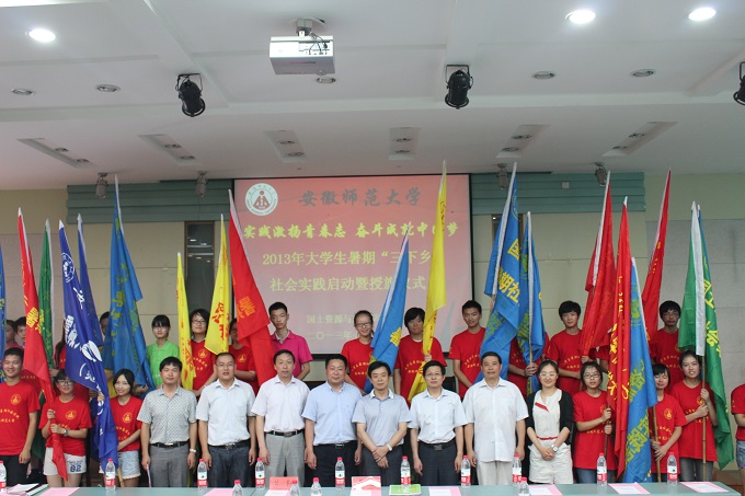 大会在庄严的国歌声中拉开了帷幕,吴春雷书记和焦华富院长分别宣读了学院2013年暑期社会实践活动通知和beat365暑期社会实践校、院级重点团队名单;校院领导还向本次暑期社会实践团队指导老师颁发了聘书;学院暑期社会实践思政指导老师路丙辉、校重点团队成员代表莫秀蕾同学也先后在仪式上发言。接着在欢快的乐曲声中,与会领导为国旅学院校、院级重点团队授旗。