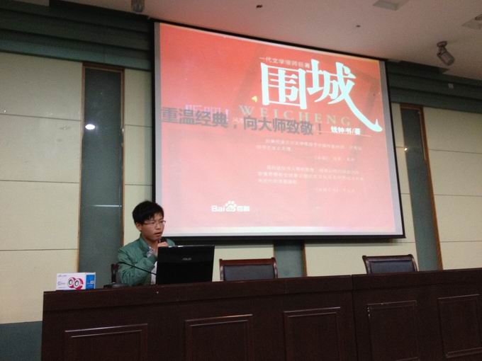 活动以团小组的形式开展,参赛选手按抽签顺序依次出场。比赛在王正同学的影评《无间道》中开始,紧接着呈现的有陈浩的《围城》、许涛的《平凡的世界》、余琳琳的《简爱》、宋丹然的《那一年我们毕业了》、曹瑶红的《花田半亩》等,这些精彩的书评引领同学们步入一个个文学盛宴,现场气氛非常热烈,掌声、赞叹声不绝于耳。黄文斌同学的影评《倩女幽魂》以其唯美的画面,精妙的演说将比赛推到高潮。马蓓蓓同学的介绍的《云图》以其扑朔迷离的情节给同学们留下悬念。最后比赛在刘钰的影评《泰坦尼克号》中落幕。经过全体同学投票评选,黄文斌荣获一等奖,刘钰、陈浩获二等奖,许涛等3人获三等奖。