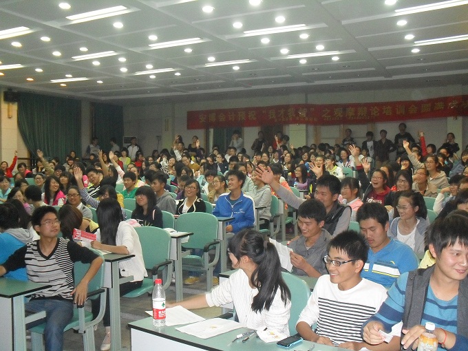 本次培训会由文礼部马雪洁和赵俊主持,在对主讲人做了简单的介绍后,培训会正式开始。首先,由辩协副会长郭宁清结合自己在辩协的工作经验与辩论的专业知识,向各成员介绍了辩论的环节和规则。并且让在场成员观看了国际大专辩论赛的视频,让会员们更加直观地了解辩论赛事。随后,辩论团的各个团长分别介绍了辩论当中各个辩手的职责和辩论技巧。,并给大家分享了一些她们在参加辩论赛中的经验。整个交流会过程中,各成员认真听取了相关知识和经验,同时对于重点内容也做了相应笔记。本次培训会的最后一个环节是有奖抢答活动,各位成员在此环节表现得活跃积极。