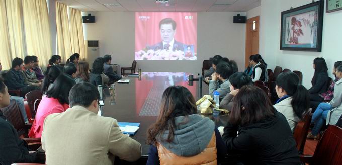 11月8日上午9点,全院团员青年骨干跟随学院领导班子成员、全体党支部书记、专兼职辅导员等80余人在学院三楼会议室集中观看了党的十八大开幕盛况。通过集中观看,广大师生一致认为,胡锦涛同志的报告是我们党在新世纪带领全国人民全面建设小康社会、开创中国特色社会主义事业新局面的伟大行动纲领,重点突出,高屋建瓴,气势恢宏,论断精辟,充分体现了与时俱进的创新精神。
