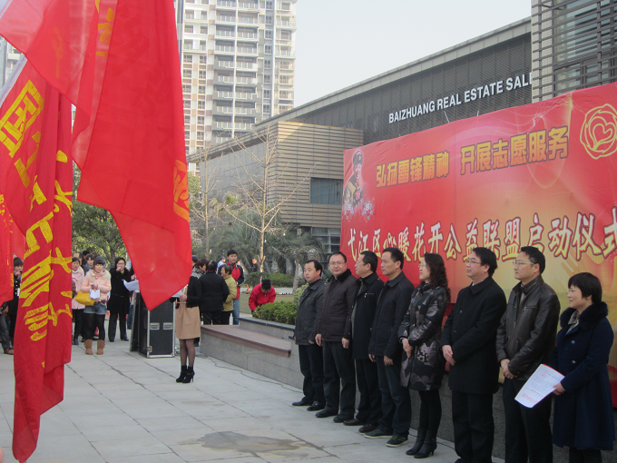 今年是毛泽东同志题词“向雷锋同志学习”发表50周年,为响应全国上下即将掀起的“学雷锋”活动高潮,国旅学院团委提前酝酿,精心策划,广泛动员,在校团委的指导下,携手弋江区民政局于3月3日上午9时,在柏庄春暖花开小区广场举办了盛大的公益服务活动。芜湖市民政局副局长张达志,弋江区区委常委、宣传部长刘勤,副区长汪敏,区民政局彭鸿雁等领导同志莅临现场指导慰问。