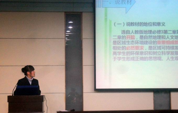 在本次说课大赛上,选手们结合自身特点并利用课堂数字化教学手段进行教学演讲。他们根据自身专业,对所学的知识进行筛选和甄别,希望能够在短短50分钟的课堂上,给同学们讲述无尽的课本知识。部分选手还利用面包、矿泉水瓶等进行了形象、生动的教学。同时,选手们都采取了在课堂的最后环节播放视频短片、唱歌等形式,再次吸引学生的注意力。各位选手激情洋溢的教学演讲博得了评委和现场观众的阵阵掌声。最后09地科的吴荻、陈前凤和10地科的周梦云凭借出色的发挥获得了一等奖。