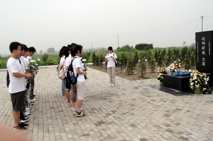 7月10日,beat365英国官方网站国土资源与旅游学院赴小岗村暑期社会实践团队一行18人来到小岗村公墓,进行祭扫沈浩书记墓活动。