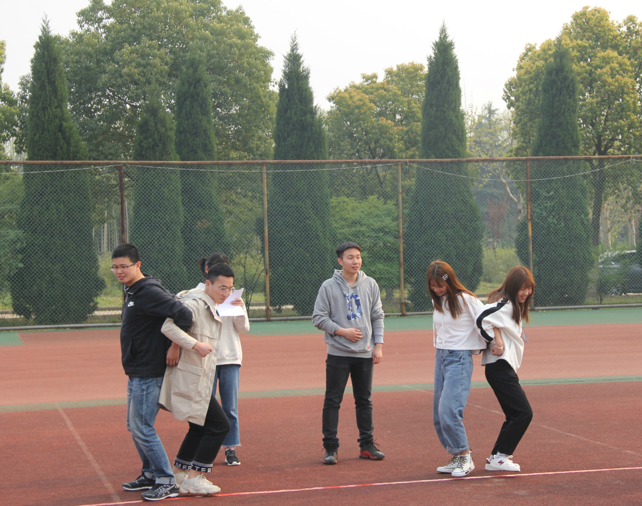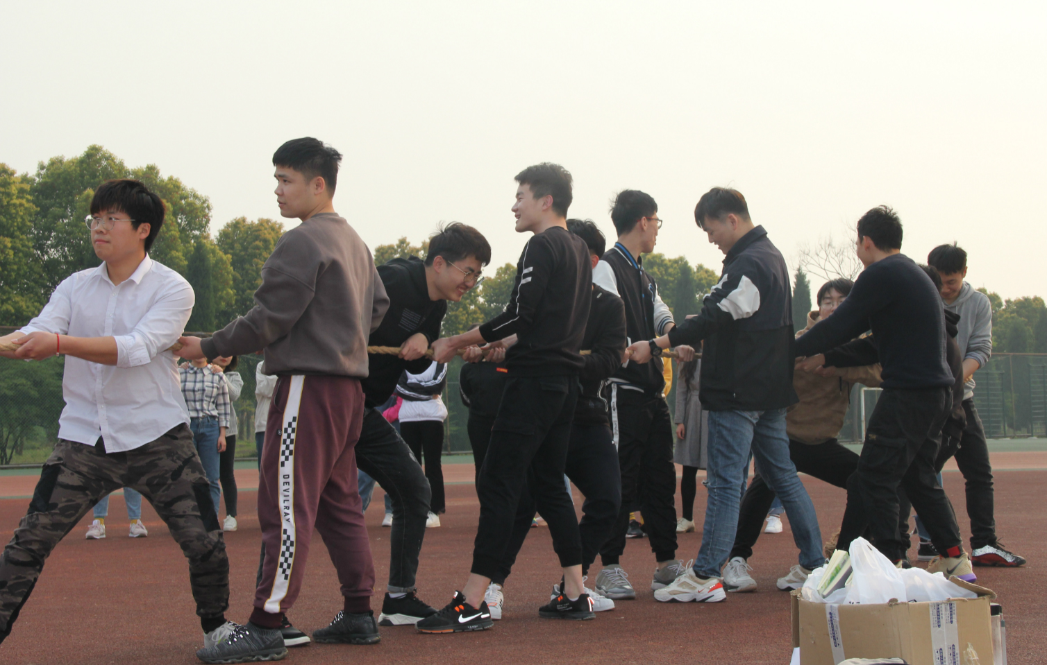 本次趣味运动会共有四个项目,分别是螃蟹运球、五人六足、夹乒乓球接力跑与拔河比赛。每个项目都既培养团队合作精神,又充满趣味性,激起了大家高涨的参赛热情。首先开始的是螃蟹运球项目,大家两两组队进行比拼,在参与者的默契配合下和大家的欢呼声中,每一个队伍都顺利到达了终点。然后开始的是五人六足项目,大家在比赛开始前反复训练,有的队伍配合默契,越跑越快,有的队伍却无法保持平衡,速度缓慢或跑不齐整。过程中,各队都拼尽全力向前跑,有的队伍甚至跌倒在了终点。不过,从欢乐的笑声中可以感觉到大家已经在这些有趣的活动中认识了新朋友,增进了友谊。最后当然也是最值得一看的就是拔河比赛,我班与法学班的同学分别男女组队,拔河队员们口中高喊着“一二,一二”,双手紧拉长绳,使出浑身解数,未参赛的同学们也自发组成啦啦队为队员们呐喊助威,双方势均力敌,难分伯仲。最终18旅游管理专升本班凭借微弱的优势,取得了拔河的胜利。