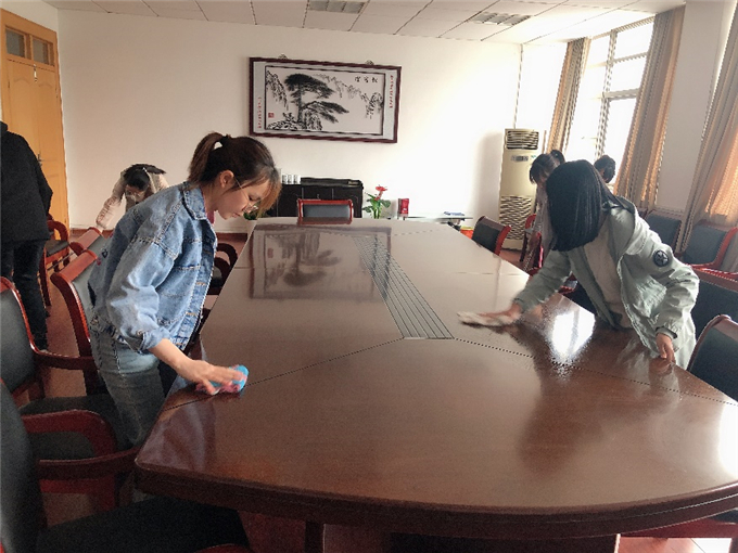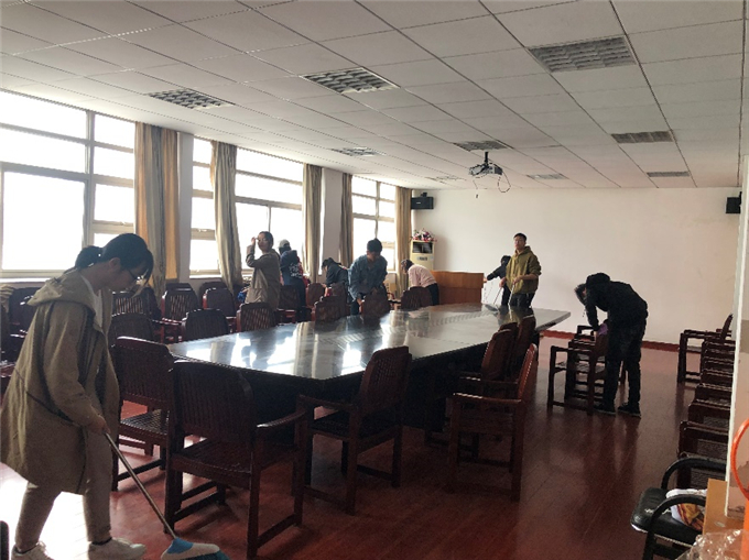在团支书侯皓文的带领下,一行人来到了beat365英国官方网站行政楼清扫三楼及四楼会议室。同学们扫地、拖地、擦门、擦桌椅、整理桌椅布局……分工合作,井井有条。清洁干净整洁后的会议室焕然一新,为下午考研复试的学长学姐们营造一个更好的面试环境。雷锋言行一致、公而忘私、艰苦奋斗、助人为乐,同学们在平凡而重要的劳动中学习雷锋精神,传承并践行助人为乐的中华民族优良品质。