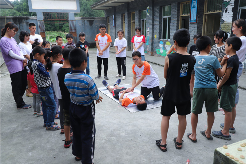 尖山村是一个很偏僻的村落,村子里的成年人几乎都外出打工,剩下的大多是老人和儿童,安全意识淡薄,安全知识也十分匮乏。尖山村小学的这些留守儿童们,几乎没有能够接触这类知识的渠道。在团队队员们看来,这个活动的真正目的,是向尖山村的人们科普急救知识,引起他们对于安全的重视,用安全知识把孩子们和尖山村“武装起来”。