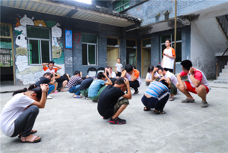2019年6月,四川宜宾市内发生多起连续地震,尖山村虽然地处川东,但是依然会受到省内地震的影响,而稚嫩的孩童在地震面前是弱小而又无助的。为培养孩子防震减灾安全意识、切实提升安全技能,帮助孩子安全健康成长,团队队员们结合现实情况,精心策划,为孩子们开展了一次地震应急疏散安全演练与紧急救援知识教学活动。
