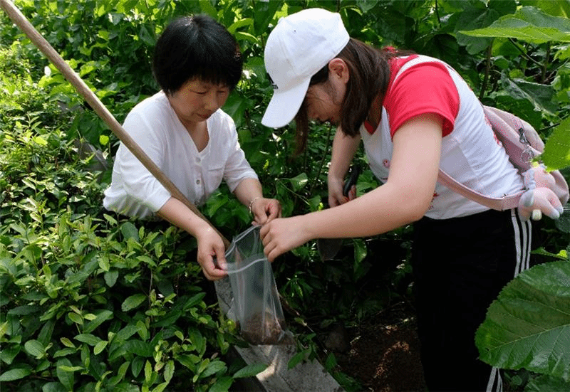 路芬还带领队员们来到径流小区观测场。在这里,程先富亲身示范了表层土壤采样的具体操作方法,并说明了注意事项。由于土壤本身空间分布不均一性较为明显,因此,对土壤采样应首先多点取样,而后充分混合,最后用四分法将多余土壤弃去,这样才能更好地代表取样区域的土壤性状。