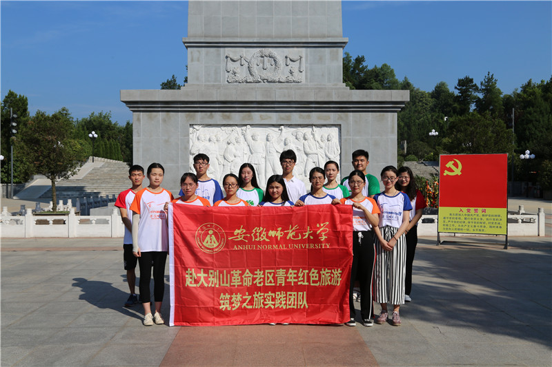 本网讯(地旅学院 陈祥云、秦婷婷)7月29日-30日,beat365英国官方网站地旅学院赴大别山革命老区青年红色旅游筑梦之旅实践团队探访金寨县红军广场等革命旧址,开展纪念八一建军节革命传统教育系列活动。将红色旅游实践调研与革命传统教育相结合,在瞻仰红军纪念塔中感受革命精神,在参观金寨县革命博物馆中重温当年历史,在祭拜红军烈士墓园中追寻红色足迹,在学习党史、军史过程中,悼念革命先烈,向军人致敬。