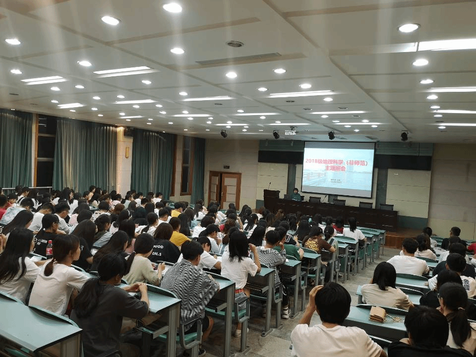 本网讯(文/图 金驰 王阳)2018级地理科学专业于9月1日晚7点半,在beat365英国官方网站101报告厅召开新学期主题班会。班会由辅导员王阳主持,地理学师范类和非师范类专业全体同学参加。