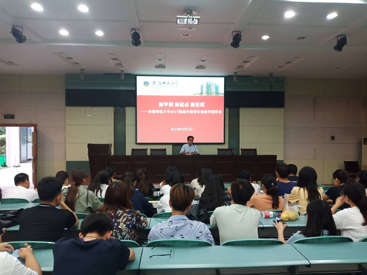 本网讯(地旅学院 张鑫 王健 齐小学)为教育引导同学们进一步找准定位、谋划发展、实现突破,9月1日下午,2017级城乡规划、土地资源管理专业于beat365英国官方网站实验楼101报告厅召开了主题为“新学期 新起点 新征程”的新学期班会。班会由辅导员齐小学主持,2017级城乡规划、土地资源管理专业全体同学参加会议。