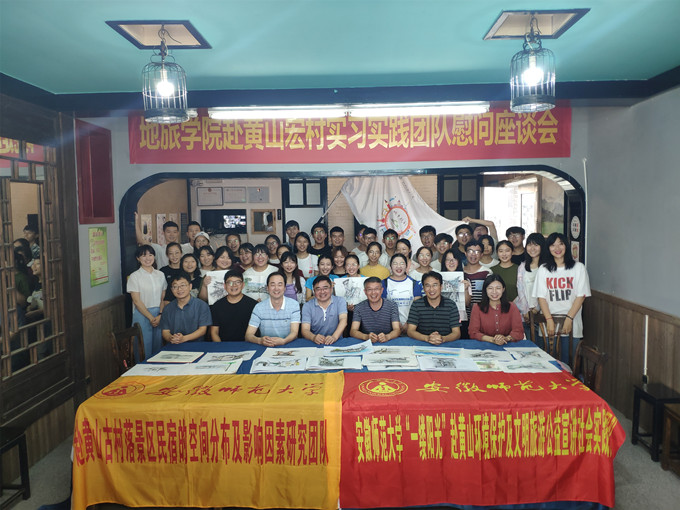 地旅学院高度重视学院2019年大学生暑期“三下乡”社会实践活动。7月10日,地旅学院党委书记贾冠忠、院长苏勤、院党委副书记乔静、城乡规划专业负责人杨兴柱等一行来到黄山黟县宏村,实地走访学生实习实践现场,召开座谈会,亲切慰问赴黄山地区环境保护及文明旅游公益宣讲等3支实践团队师生。校团委副书记(兼职)王阳、地旅学院团委副书记陈祥云,团队指导教师鲍涛、黄秋实、张晨阳等和实践团队成员代表参与了慰问活动。