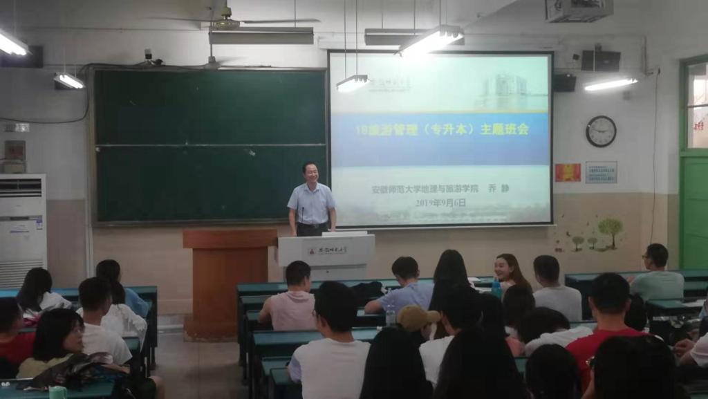 本网讯(地旅学院 韩红豆)9月6日下午,2018级旅游管理(专升本)专业在行知楼4号楼104教室召开主题班会,2018级旅游管理(专升本)专业全体同学参与此次会议,院党委副书记、2018级旅游管理(专升本)兼职辅导员乔静主持。