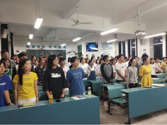 本网讯(王阳 罗文菁)喜迎国庆,为庆祝新中国成立70周年,9月29日晚,2018级地理科学师范专业在教学楼四栋103教室举办“我和我的祖国”主题团日活动,活动由团支书何雨婷主持,辅导员王阳及全体同学参与。