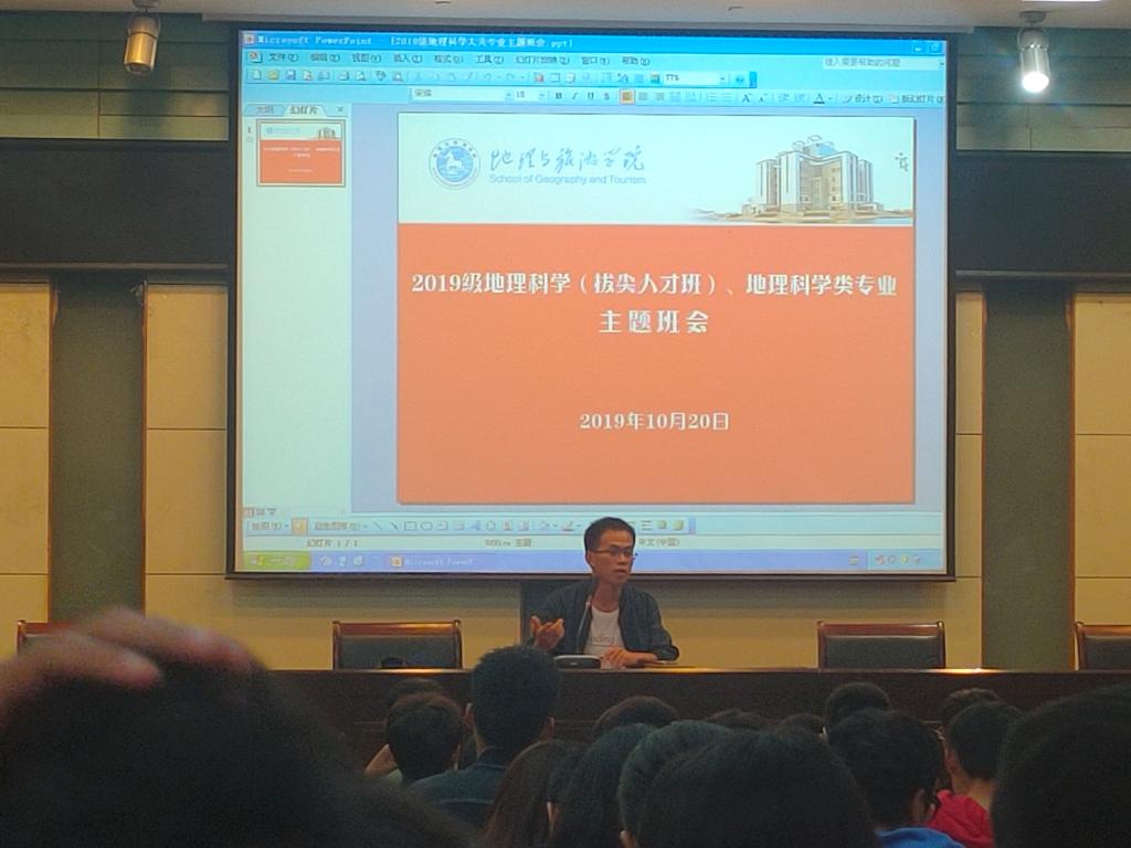 本网讯(地旅学院 江文萱 齐小学)10月20日晚,2019级地理科学大类专业在学院实验楼101报告厅成功举办了新生团建系列活动。2019级地理科学(拔尖人才班)、2019级地理科学类1班、2019级地理科学类2班全体同学参加。活动由辅导员齐小学主持。