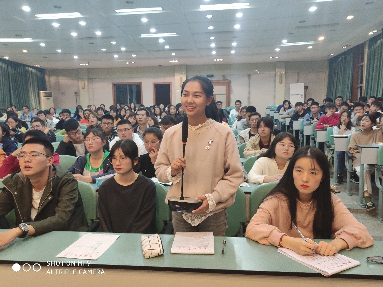 本网讯(地旅学院 武诺 齐小学)11月3日晚,2019级地理科学大类专业在学院实验楼101报告厅召开新老生经验交流会。2018级地理科学大类专业杨帆、程茜、陈健、冯安兰、章皓宇、汪岩、张良敏等7名优秀老生代表,2019级地理科学(拔尖人才班)、2019级地理科学类1班、2019级地理科学类2班全体同学参加交流会。会议由辅导员齐小学主持。