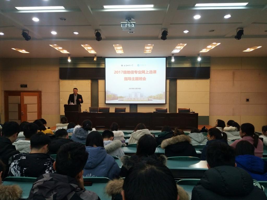 本网讯(地旅学院 章莹莹)为做好2019-2020学年第二学期学生选课工作,12月18日上午,2017级地理信息科学专业于地旅学院院楼101报告厅召开了网上选课指导主题班会,会议由辅导员韩红豆主持。