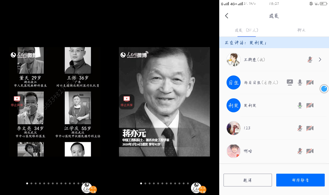 同时,为进一步加深同学们对习近平总书记在湖北考察新冠肺炎疫情防控工作时的重要讲话精神的认识,卢雨佳介绍了王兵、冯效林、江学庆、刘智明、李文亮、张抗美、肖俊、吴涌、柳帆、夏思思、黄文军、梅仲明、彭银华、廖建军等14位在新冠肺炎疫情防控牺牲烈士简要情况,更真实直接地体现了在此次防疫战中医生、护士、民警、社区工作人员……伟大奉献与牺牲精神,现场氛围庄重而高昂,同学们无不为他们所感动。其中,殷如婷与唐鸿两位团员代表分别详细讲述了彭银华和李文亮的抗疫故事,说到动情之处,声音都开始哽咽起来。