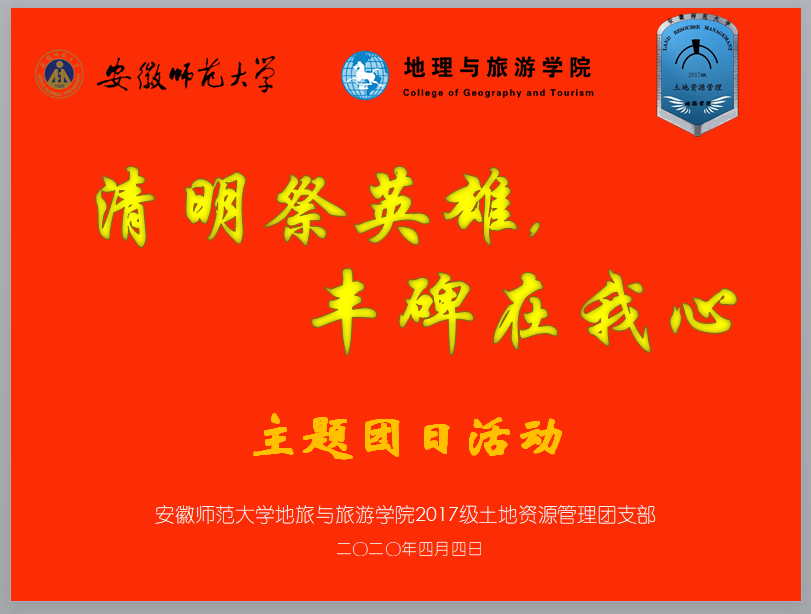 本网讯(地旅学院 王健)为引导同学们清明节期间不扎堆聚集,通过健康文明方式表达对先人的缅怀、对英烈的敬意,进一步牢记英烈的丰功伟绩、传承英烈的伟大精神,4月4日下午,2017级土地资源管理专业通过网络平台开展“清明祭英烈,丰碑在我心”主题团日活动。主题团日活动由团支书卢雨佳主持,2017级土地资源管理全体团员与辅导员王美参与活动。