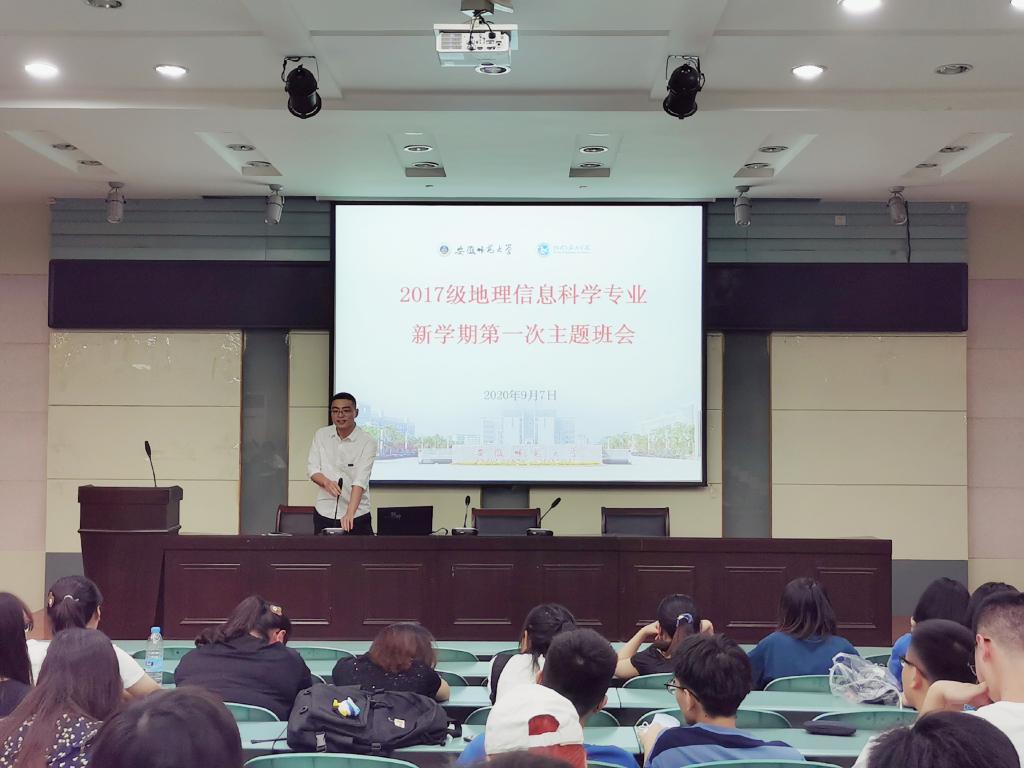 本网讯(地旅学院 章莹莹)为迎接新学期的到来,9月7日下午,2017级地理信息科学专业于beat365英国官方网站实验楼101报告厅召开了新学期第一次主题班会。班会由辅导员韩红豆主持,2017级地理信息科学专业全体同学参会。