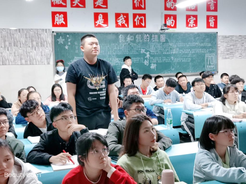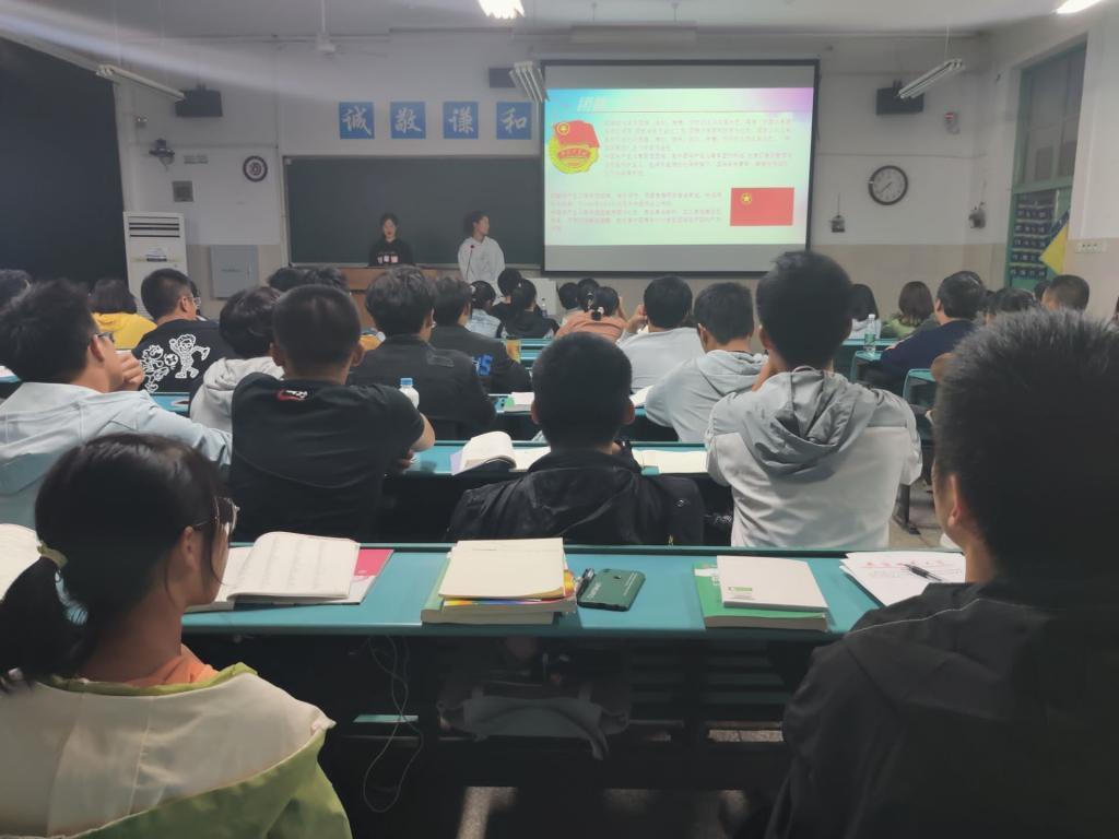 “一次团情学习”由“党的基本知识问答环节”展开,同学们踊跃抢答,现场营造出一种浓厚的学习氛围。接着主持人带领大家认真学习了中国共青团团史、“三会两制一课”,团员发展细则以及团徽团旗的深刻内涵等团员基本知识。