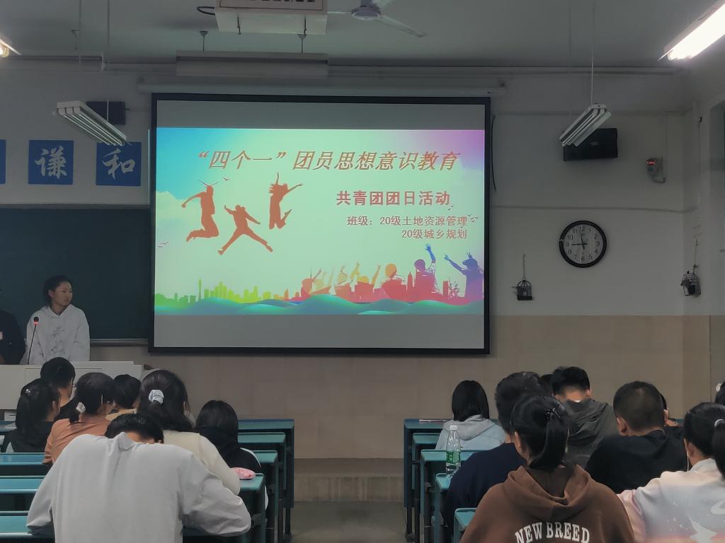 本网讯(地旅学院 刘少杰 陆峻然 黄海露) 为强化新生团员意识,充分发挥团组织在新生思想教育中的重要作用,10月15日晚7:30,20级土地资源管理专业与20级城乡规划专业联合开展“四个一”团员意识教育活动。本次活动由20级城乡规划团支书刘美慧和20级土地资源管理组织委员林丹倩主持,辅导员刘少杰、两班全体同学参与本次活动。