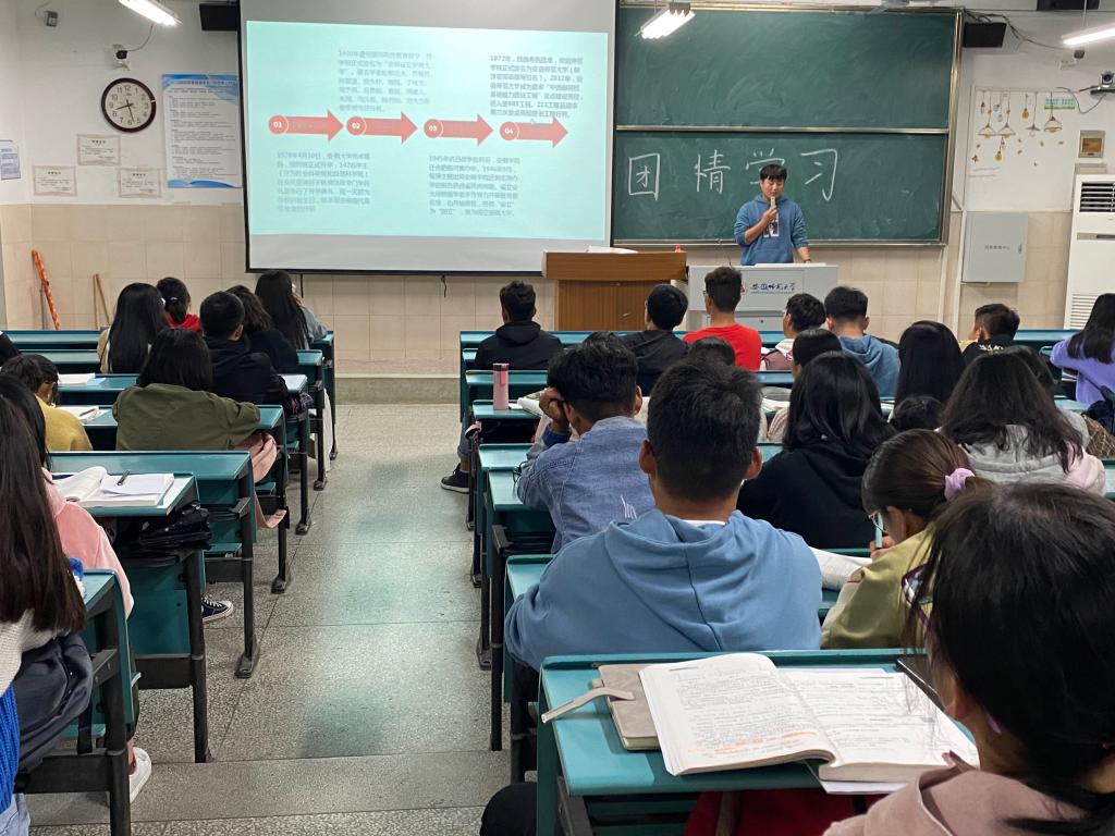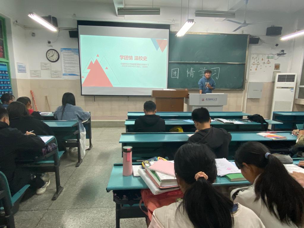 本网讯(地旅学院 黄娟娟 徐雨菲)五四火炬,你我传递;重温校史,焕发激情。为了加强2020级新生团员意识,加深同学对学校的了解。10月16日晚,地旅学院2020级旅游管理专业1班团支部和2班团支部组织开展“学团情,温校史”主题团日活动,2020级旅游管理专业全体新生参加。