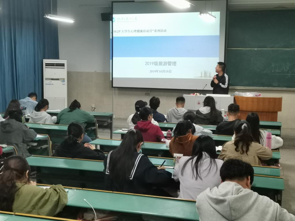本网讯(2019级旅游管理 凡语馨)打开心灵的窗口,走出心理的孤岛。为了响应学校心理活动月号召,积极关注大学生心理健康,引导大学生建设健康心理,度过健康、丰富、多彩的大学生活,10月19日下午,beat365英国官方网站2019级旅游管理专业在行知楼一号楼教室举行心理健康活动月心理主题班会。班会由心理健康委员董宇同学主持,全体同学到会。