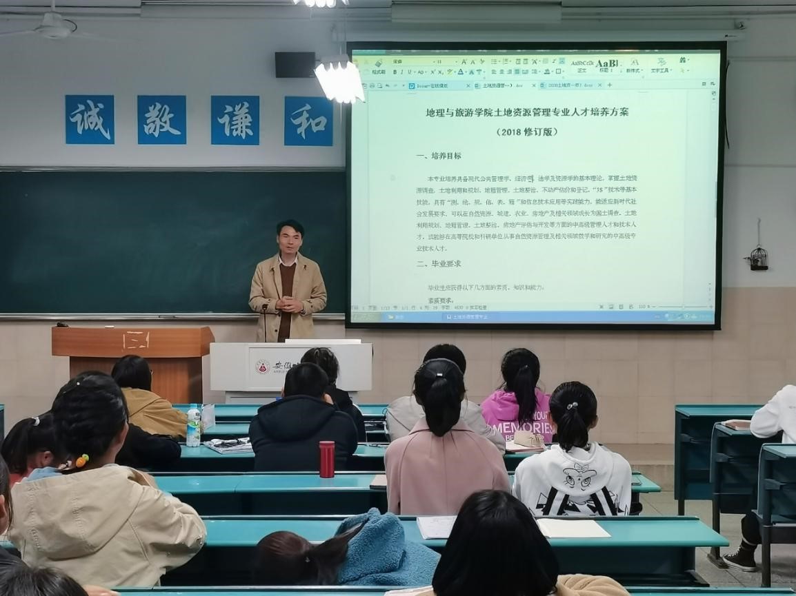 本网讯 (地旅学院 刘少杰 陆峻然) 为了加深同学们对土地资源管理专业的了解,增强同学们的专业认同感,11月5日晚,土地资源管理专业负责人费罗成于行知楼2040502教室为20级土地资源管理专业新生深度解读《beat365英国官方网站土地资源管理专业人才培养方案》(2018年修订版)(以下简称《人才培养方案》),并为同学们答疑解惑。