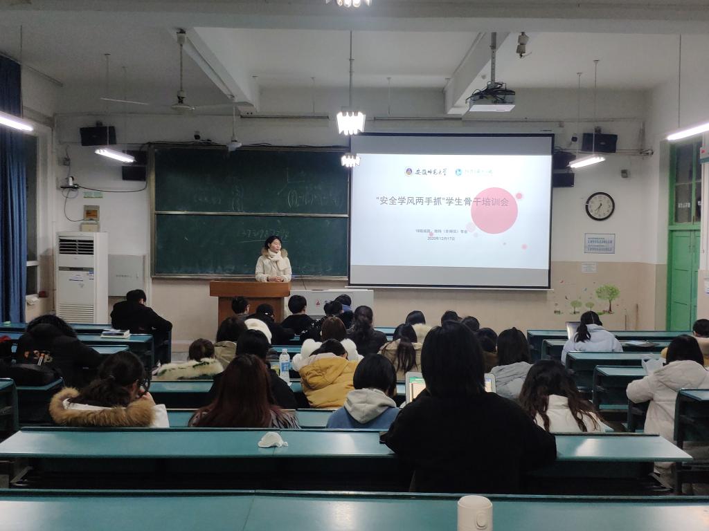 本网讯(地旅学院 潘爽 张慧)为增强安全意识、加强学风建设,2020年12月17日晚,辅导员张慧主持召开了“安全学风两手抓”学生骨干培训会。2018级城乡规划、2018级地理科学(非师范)专业全体班委、寝室长及党员等学生骨干出席会议。