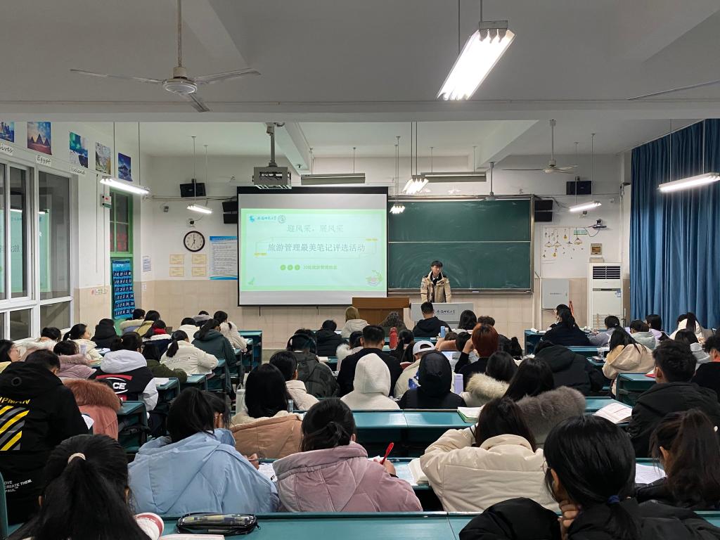 本网讯(地旅学院 邹瑾璇 吴思慧)“笔”墨生香,独家“记”忆。迎期末,展风采,为营造良好的期末备考氛围,为即将到来的期末考试做准备,建设班级学风,展现班级风采。12月17日晚, 2020级旅游管理班委会在4号教学楼203教室组织开展“2020级旅游管理专业第一届最美笔记”评选活动。此次活动由二班学习委员张乃豪主持,在2020级旅游管理专业全体班委的精心组织和全体同学的积极参与下圆满完成。